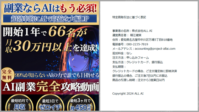 今回検証するのは株式会社ALL AIが運営する副業『AI副業』です。