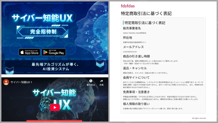 それが今回検証しているJAPAN TRADING ASIA合同会社が運営する『サイバー知能UX』でした。