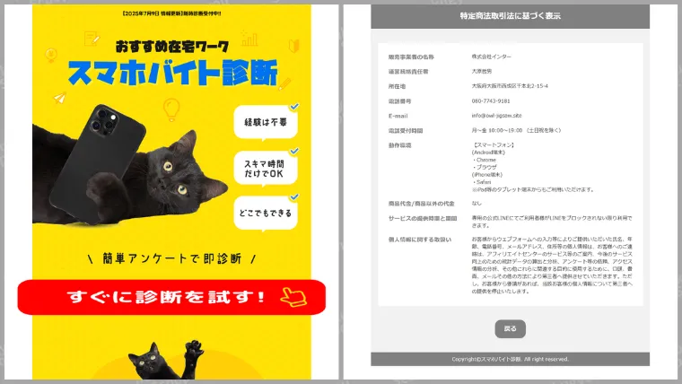 スマホバイト診断から紹介されるのは『悪質な会社』が運営する副業のみ。